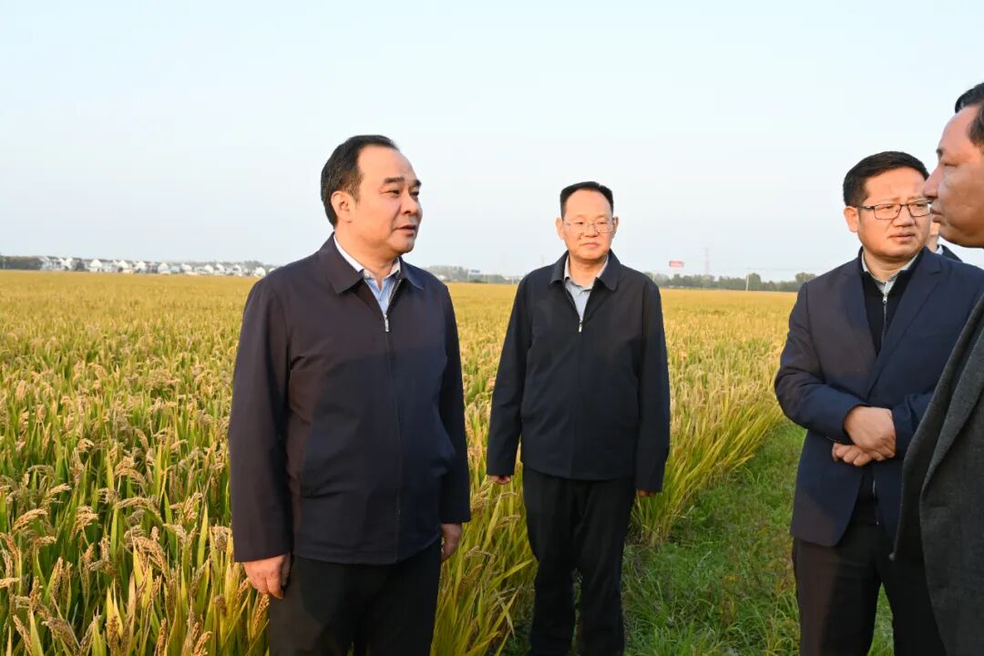 要扛牢粮食安全责任。粮食安全是“国之大者”,要密切跟踪雨情、水情变化,强化收割机、烘干机等农机调度对接,抓住一切有利时机、有利条件抢收抢烘,确保秋粮应收尽收、颗粒归仓;同步推进秋种工作,保障化肥、农药等农资供应充足,不断提高粮食质量和产量,为全年粮食丰产丰收奠定坚实基础。