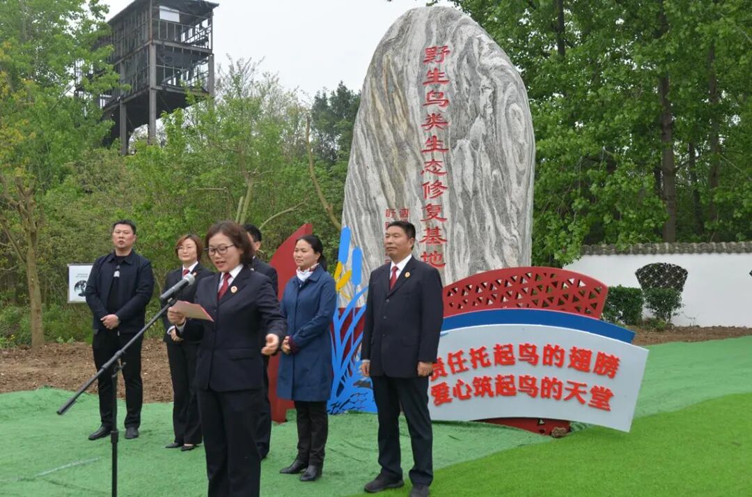 痛定思痛,行动随之而来。法庭与泗洪县人民检察院携手,在洪泽湖湿地国家级自然保护区附近的泗洪湿地观鸟园,建起江苏省首个野生鸟类生态修复基地。基地集广场、宣传教育栏、宣传廊道、悬挂鸟巢区、鸟类放生台等于一体,融现场庭审、法治宣传、警示教育、鸟类放飞、志愿服务功能于一身,既是犯错者“将功补过”的救赎之地,更是向公众昭示“破坏必究、损害必偿”的生态宣言。