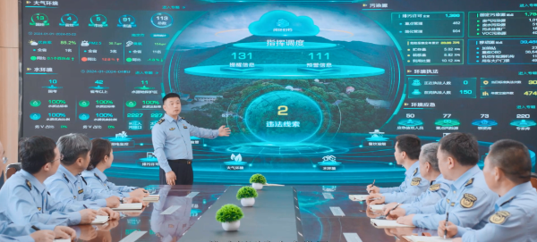 为全面推进生态环境非现场执法工作,江苏构建 “1+1+13”的全省生态环境执法“数据战队”体系(即省生态环境保护联勤中心、省级“数据战队”、13个设区市“数据分战队”)。各设区市生态环境综合行政执法局牵头成立“数据室”,具体负责辖区内“数据分战队”运转,并参照省生态环境保护联勤中心模式,与公安机关建立紧密的联动融合机制。