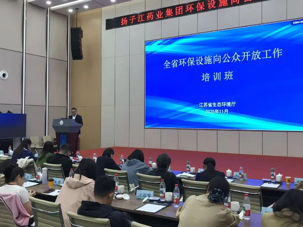 为丰富培训内容,培训班代表走入扬子江药业集团厂区,在企业环保主题宣教馆、污水处理站、危废库实地了解环保设施运维情况并进行交流。