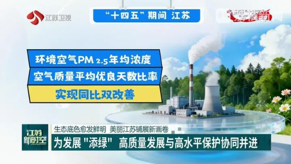 五年来,江苏协同推动高质量发展和高水平保护,全省环境空气PM2.5年均浓度、空气质量平均优良天数比率实现同比“双改善”;地表水国考断面连续3年达到优级水质,长江干流江苏段水质连续7年保持Ⅱ类;提前一年完成“十四五”主要污染物减排目标,连续5年在国家治污攻坚成效考核中获得优秀等级。
