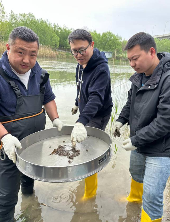 作为水生态系统健康评价的关键生物类群,淡水大型底栖动物对环境变化响应灵敏,其种类组成与群落结构是衡量水体状况的重要生物学指标。与常规理化指标相比,生物监测能够更综合地反映水环境长期变化和累积影响。此次培训紧扣这一技术要点,专家团队从监测点位布设、采泥器与D型网兜规范使用,到泥样冲洗、样品挑拣等环节,逐一进行现场示范。参训人员在河岸边近距离观摩,并动手参与样品挑拣。
